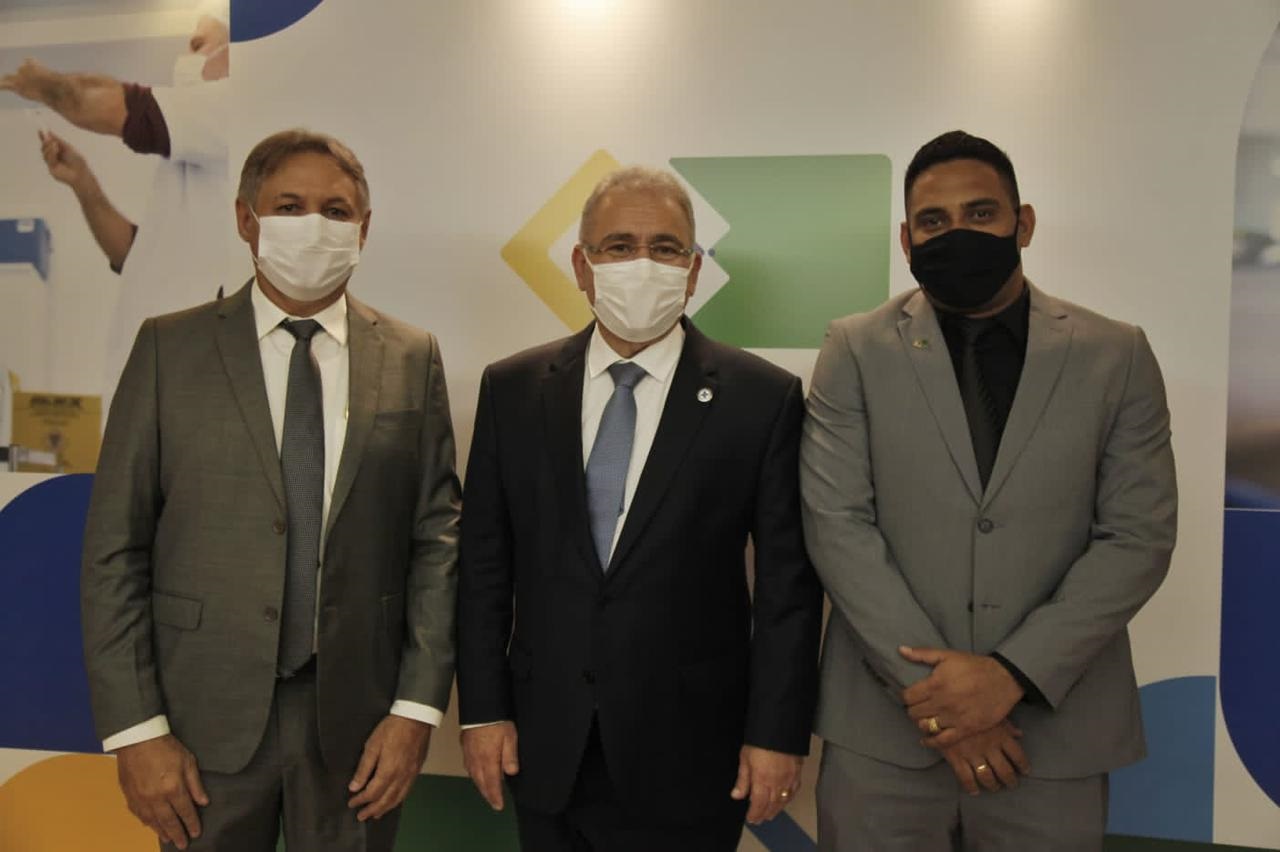 ao lado do presidente Wilames Freire e do ministro da Saúde, Marcelo Queiroga.